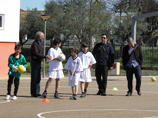 À tarde foi a vez dos quintos anos solicitarem uma ajudinha, aos autores desta dupla brilhante, para obterem melhores resultados na equipa de futsal da escola...